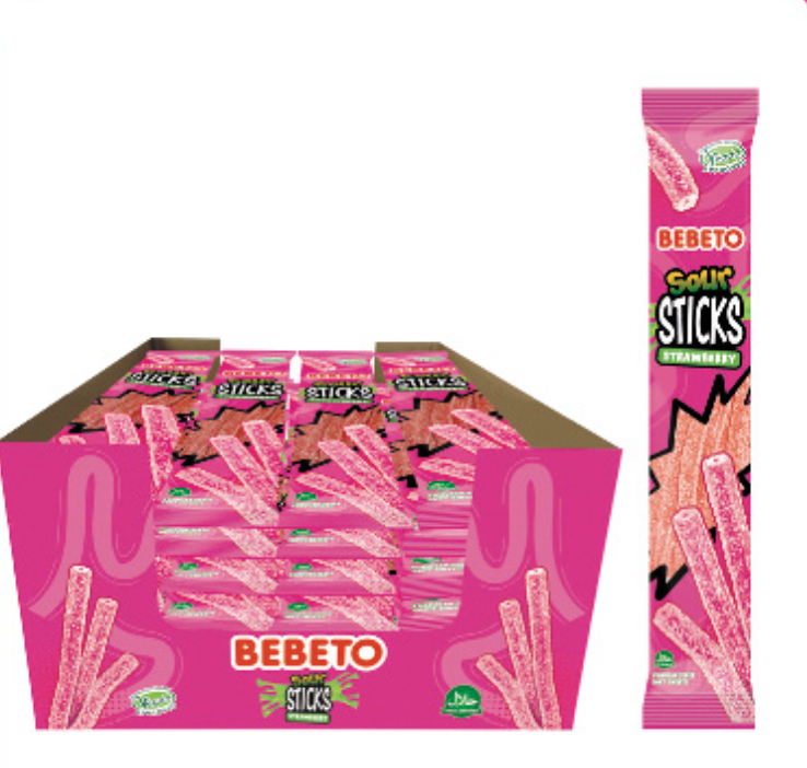 Жевательный мармелад "SOUR STICKS" со вкусом Клубники 30г/24шт/Bebeto